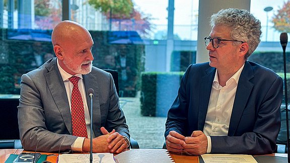 Der dbb Bundesvorsitzende Volker Geyer und der Bundestagsabgeordnete Ralph Brinkhaus sind sich einig: Es braucht eine staatliche Aufgabenkritik.